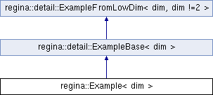 For Regina's standard dimensions, this template is specialised and offers many more example triangulations. In order to use these specialised classes, you will need to include the corresponding headers (e.g., triangulation/example2.h for dim = 2, or triangulation/example3.h for dim = 3).